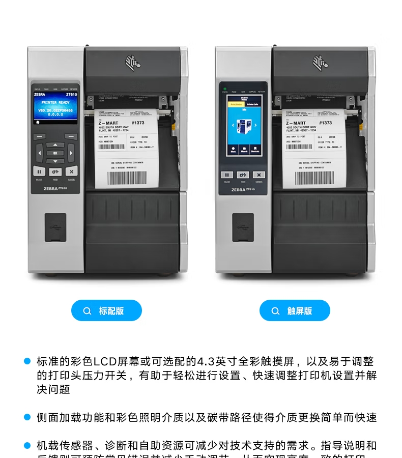 ZEBRA 斑马ZT610工业型不干胶标签吊牌水洗标条码打印机 金属标签打印机 110XI4升级款 ZT610-标准4英寸打印机(203dpi)