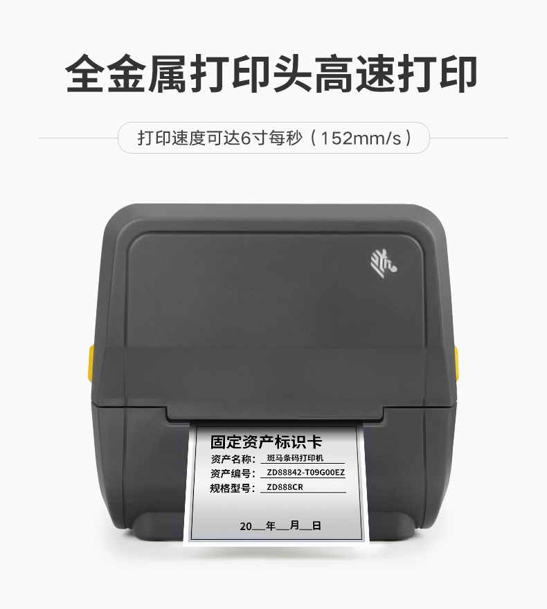 ZEBRA 斑马ZD888T 标签打印机 热转印条码打印机不干胶固定资产服装吊牌快递电子面单 ZD888T