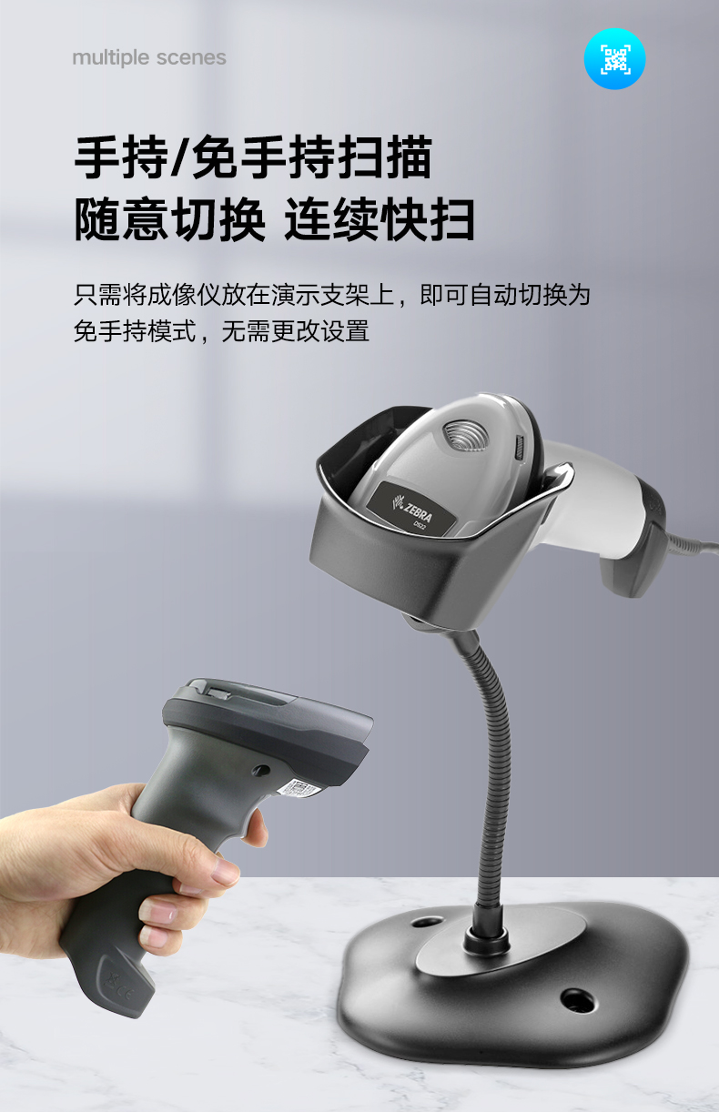 ZEBRA 斑马DS2208/2278一二维码条码枪条码枪扫码器 商超烟酒零售服装药店商品微信收银 DS2278-SR二维无线标配