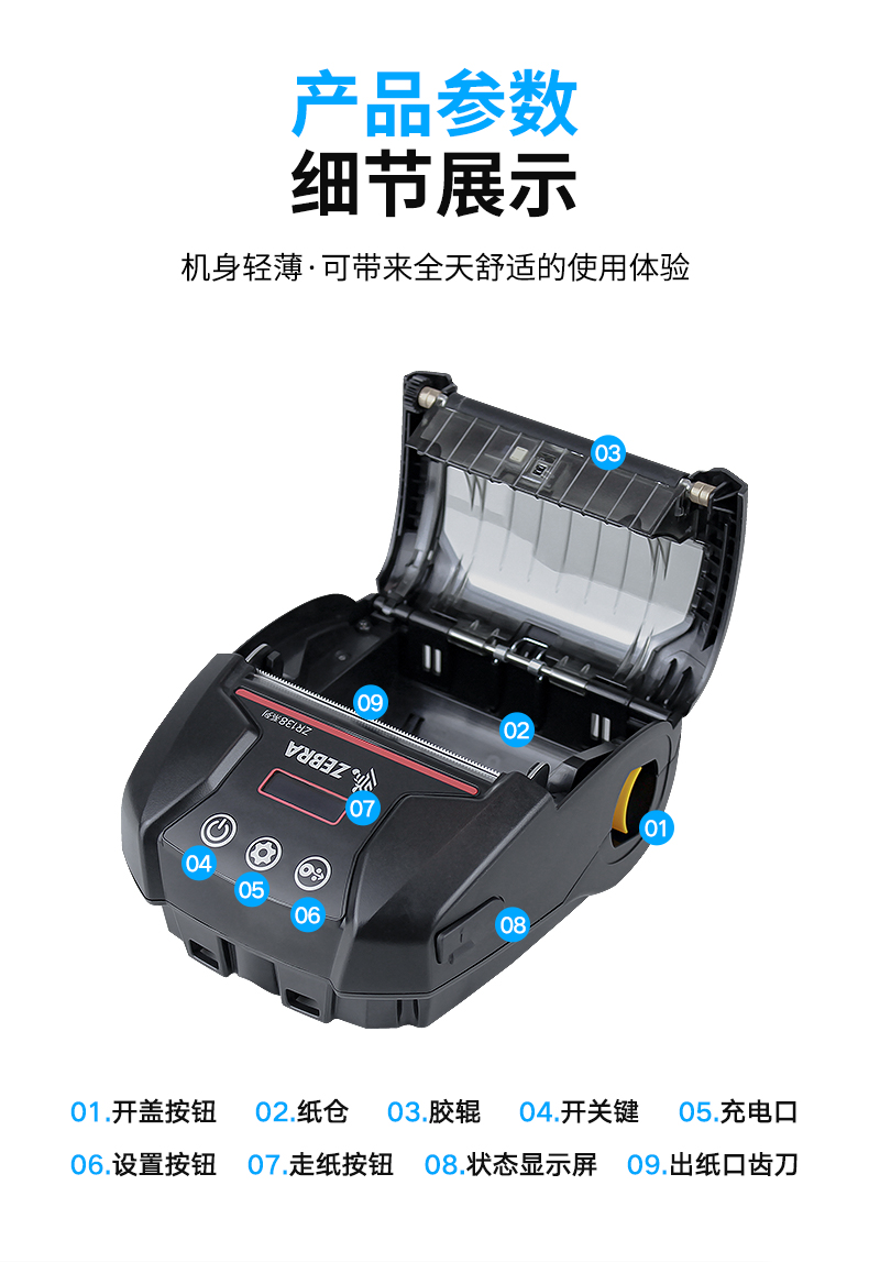 ZEBRA 斑马蓝牙便携打印机 无线条码标签打印机 ZR138 蓝牙版 (72mm宽)