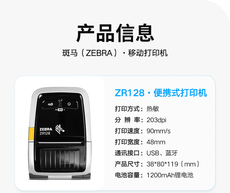 ZEBRA 斑马蓝牙便携打印机 无线条码标签打印机 ZR328 蓝牙WIFI版 (72mm宽)