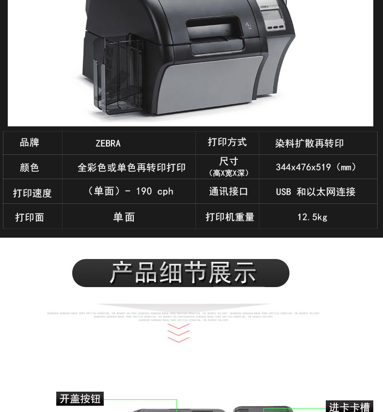 ZEBRA 斑马PVC证卡打印机人像卡会员卡健康卡员工卡热升华打印机 ZC300